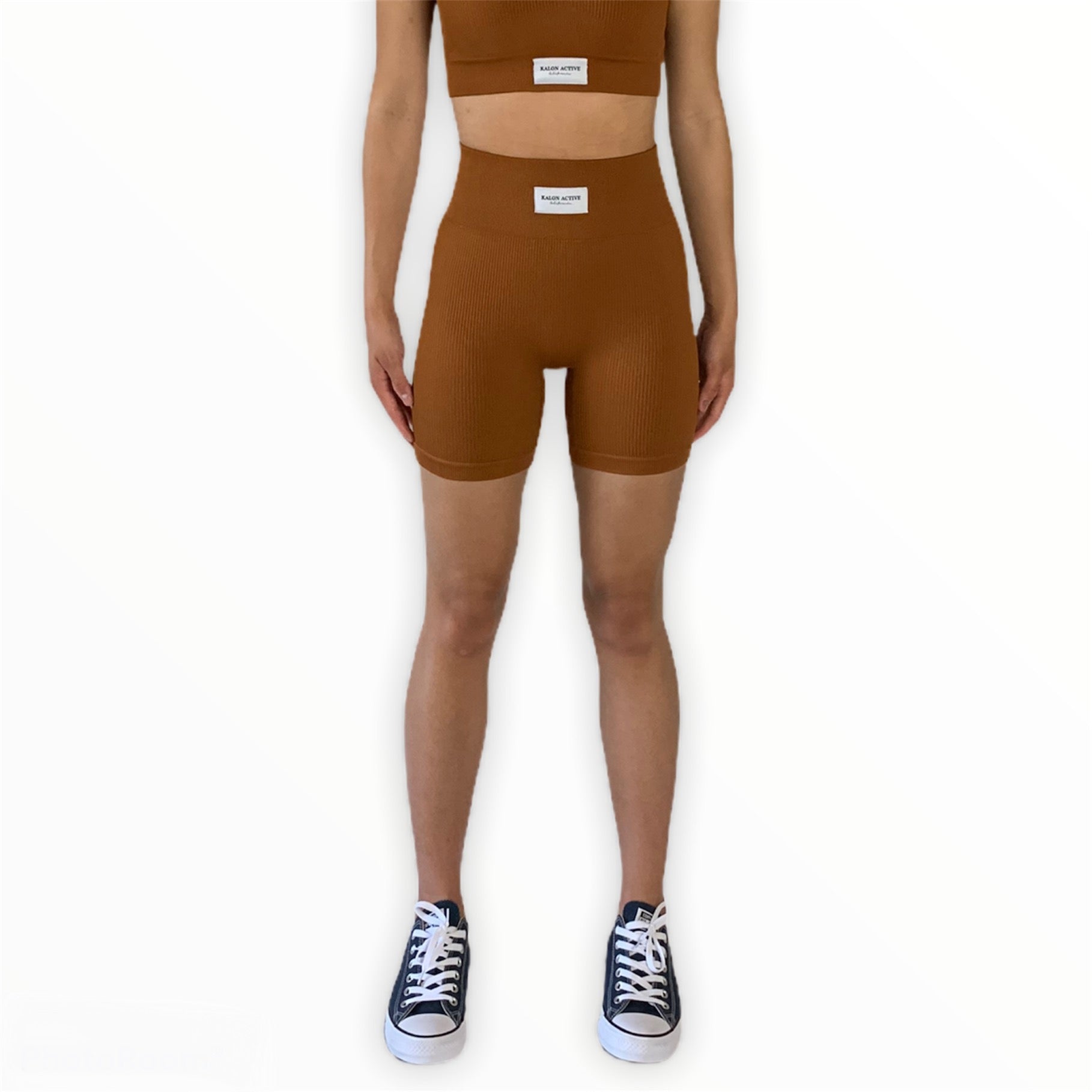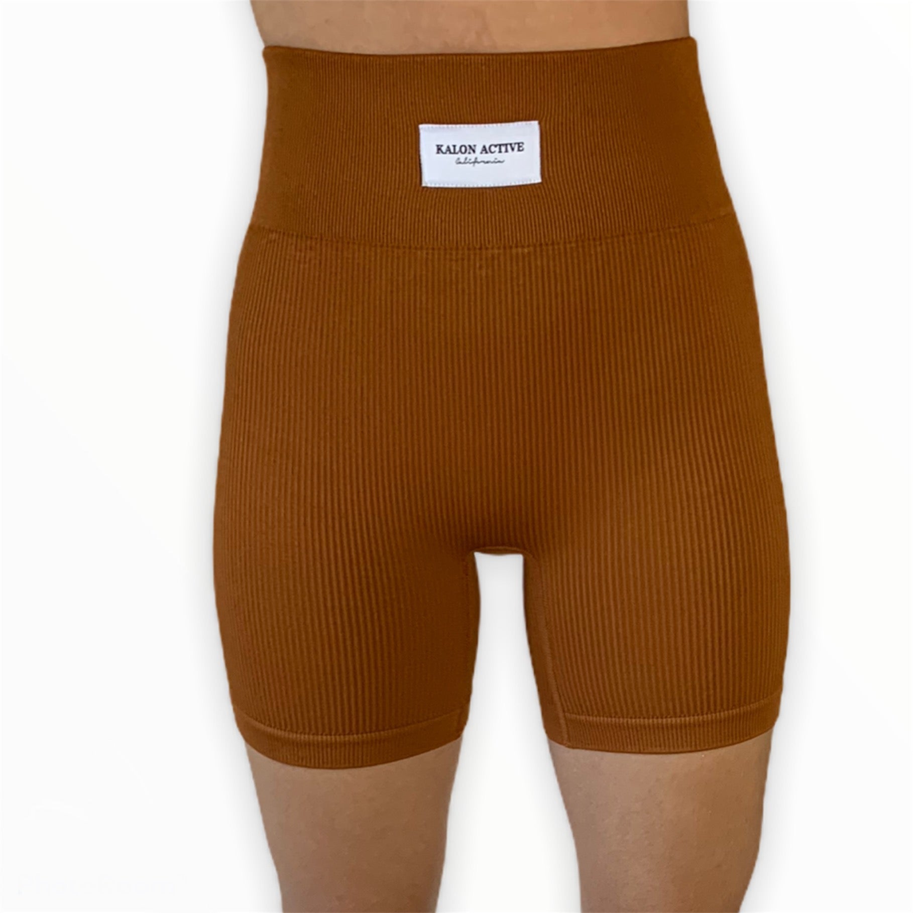 Ultimate Tiffany Ribbed Biker Shorts - Caramel Brown